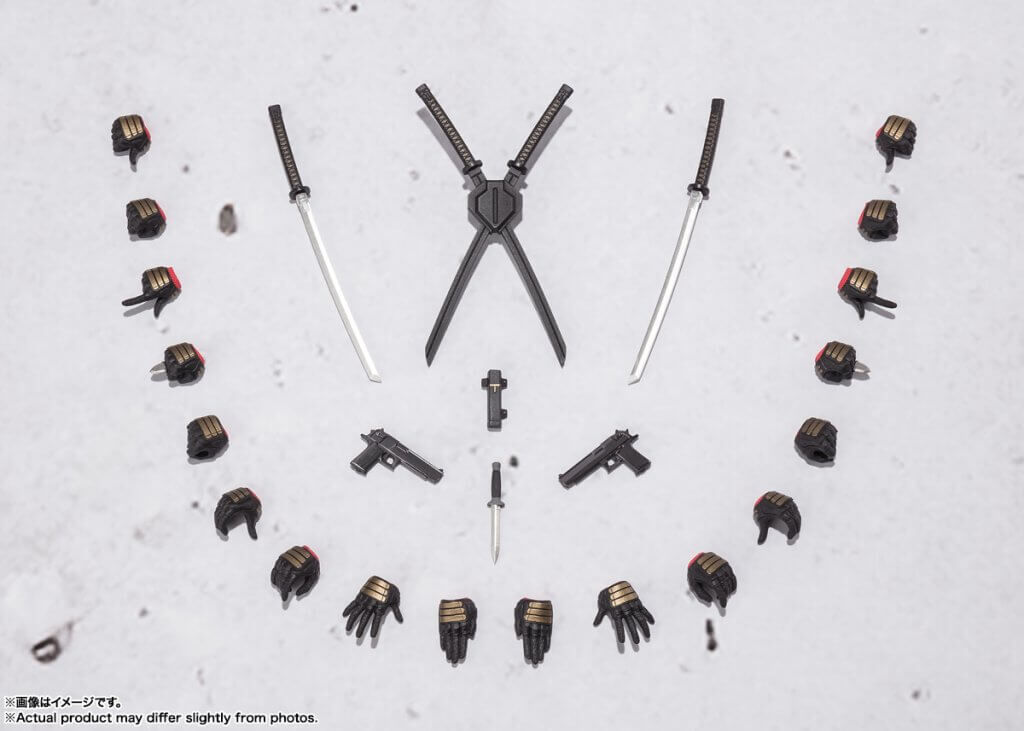 Deadpool from the movie Deadpool and Wolverine joins S.H.Figuarts! This Deadpool and Wolverine Deadpool S.H.Figuarts Action Figure measures approximately 6-inches tall. Deadpool appears with a suit model and coloring updated to the design of the movie. A wide variety of optional parts are included, allowing you to recreate Deadpool’s character as you wish, including his brilliant actions and comical facial expressions. “Headpool” that appears in the film is also included!